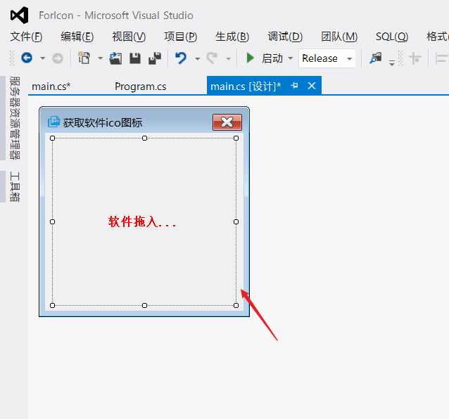 然后再右边的解决方案资源管理器里将 Form1.cs 重命名为ForIcon.cs