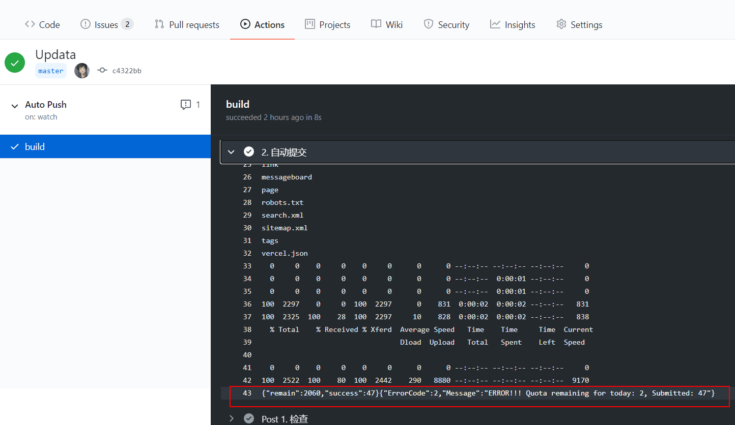 // Message:表示 你目前只剩2个url推送,而你现在推送的是47条url